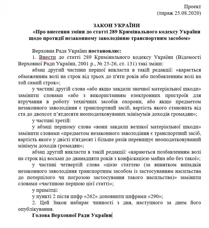 Тепер при визначенні відповідальності за викрадення автомобіля буде враховуватись його вартість.