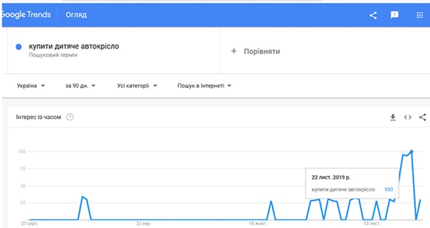 Також, як свідчать дані Google trends, 20 - 22 листопада були найбільші спалахи пошуку дитячих автокрісел у мережі. У цей день набув чинності цей закон.