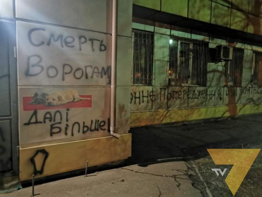 Проте у соціальній мережі такою "ініціативою" обурились. Та наступного дня ввечері будівлю ветеринарної клініки обмалювали загрозливими написами.
