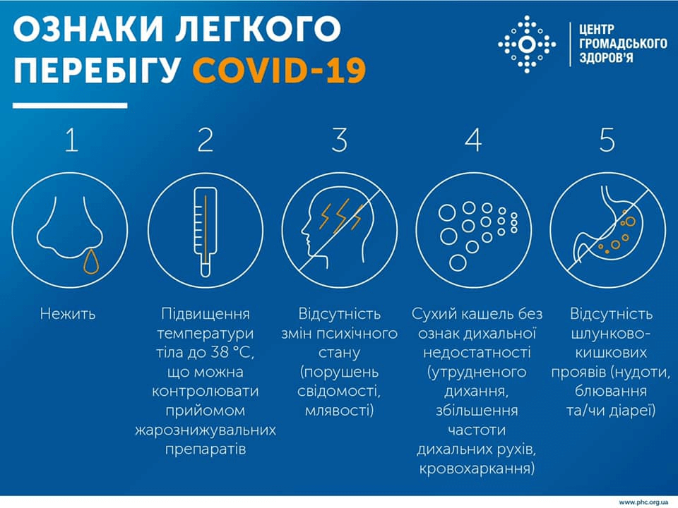 Як повідомляє Центр громадського здоров'я, ознаками легкого перебігу коронавірусу є: