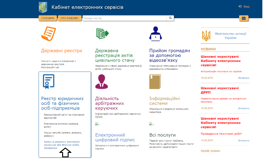 - увійти в приватний кабінет (на сайті Мін'юсту);