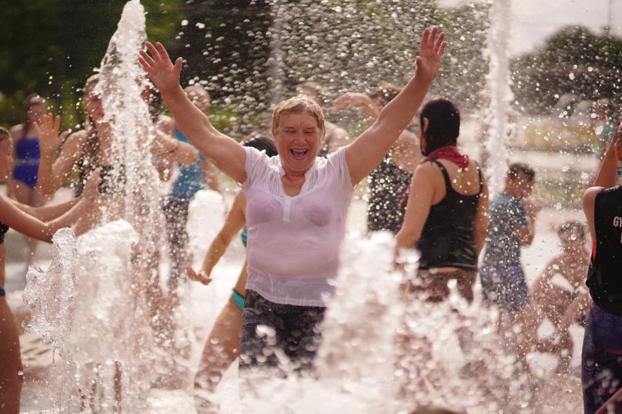 Деякі учасники стояли у позах йоги під струменями води.