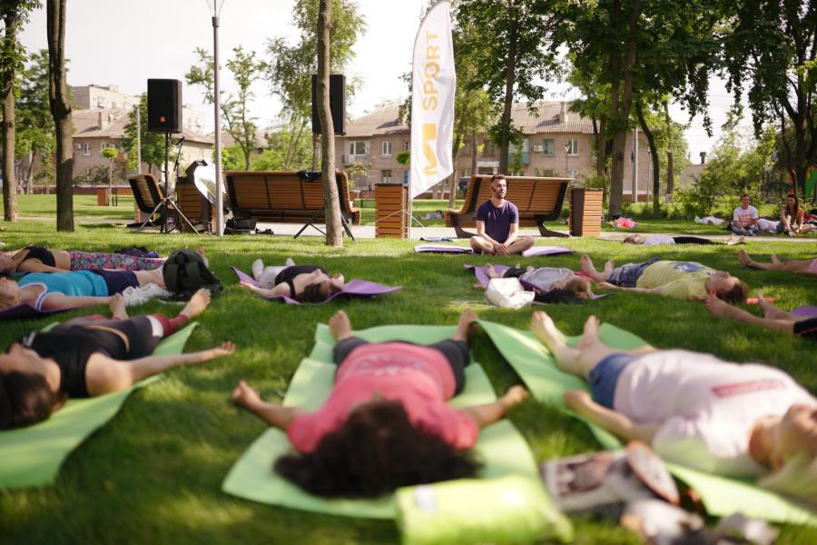 Фестиваль йоги проходив вихідними біля Мультицентру на Лівобережжі. На фотографіях можна побачити, що участь взяли, як діти так і люди старшого віку.