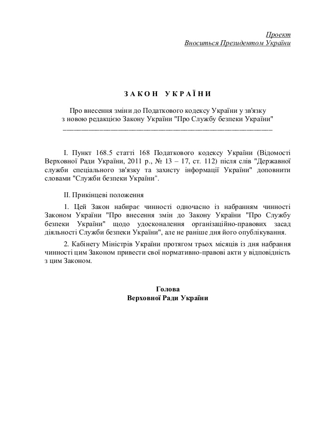 Законопроектом передбачається внесення зміни до пункту 168.5 статті 168 Податкового кодексу України щодо нарахування, утримання та сплати (перерахування) до бюджету податку на доходи співробітників Служби безпеки України.