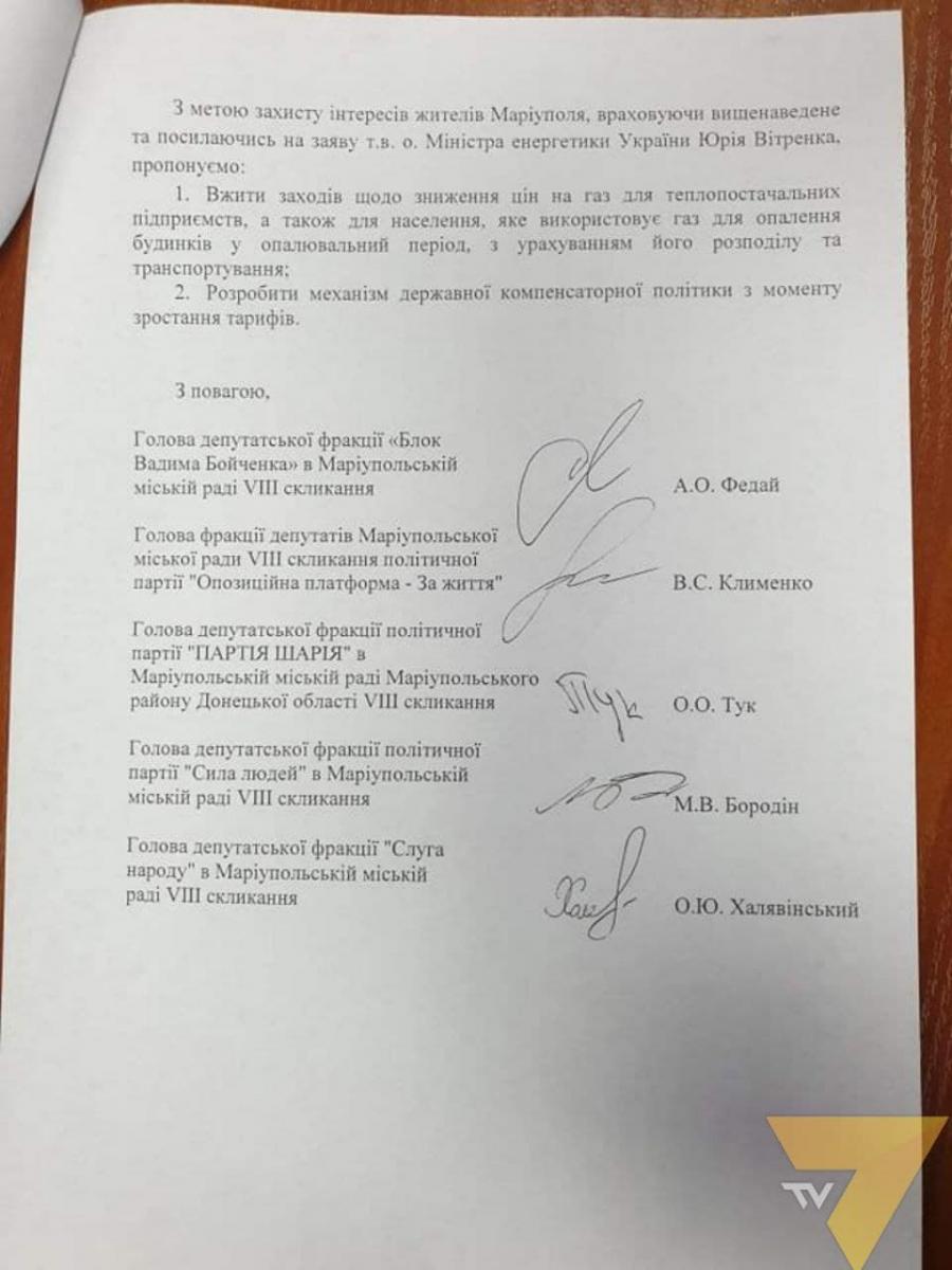 Голови депутатських фракцій Маріуполя створили лист-заяву. Вони пропонують вжити заходи щодо зниження цін на газ для теплопостачальних підприємств, а також для населення, яке використовує для опалення.
