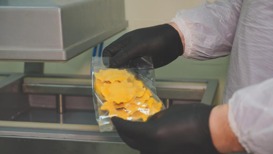 «Коли продукт висушений та готовий, ми його упаковуємо або в полиетиленовий пакет, або в крафтові дойпаки. Після чого робимо запайку герметичну. Адже ці продукти не теплять вологу. І починають псуватися, якщо закриті не герметично. Для цього ми використовуємо вакуматор», - Роман Кругляков.
