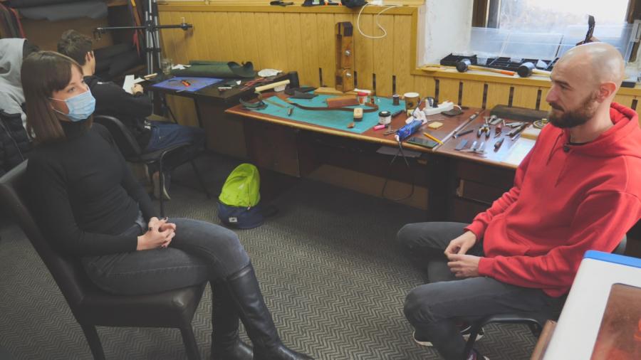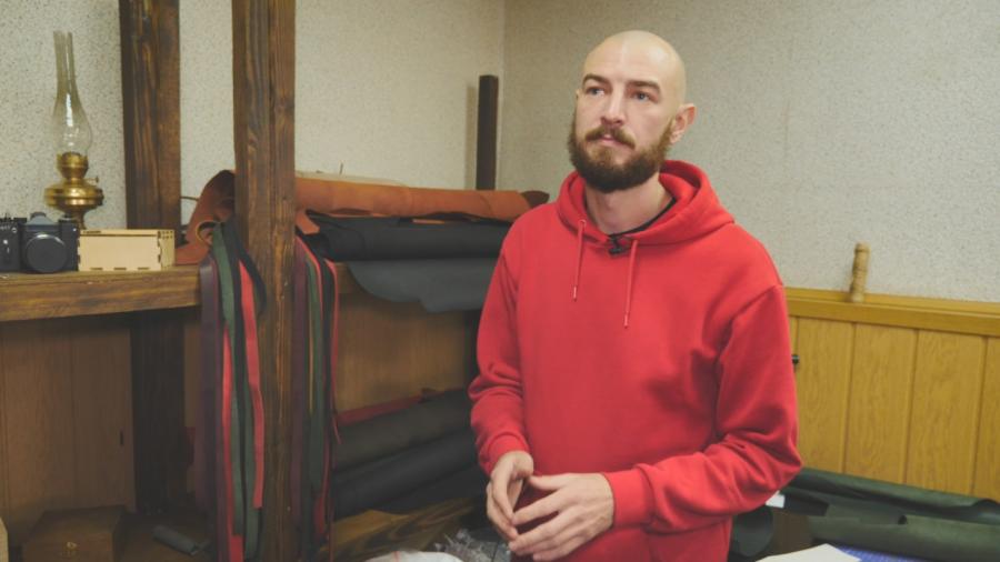 «Я пропрацював близько півроку вдома. Спочатку було 5-8 замовлень на місяць. Зараз для порівння в місяць ми до 100 замовлень робимо. Я зрозумів, що не можу шити 24 години на добу, мені потрібно відпочивати. І доведеться або відмовлятися, або підвищувати вартість. Підвищувати вартість я поки не хочу. Я хочу щоб більше людей спробували наші вироби», - Станіслав Пащенко, виготовляє вироби зі шкіри.
