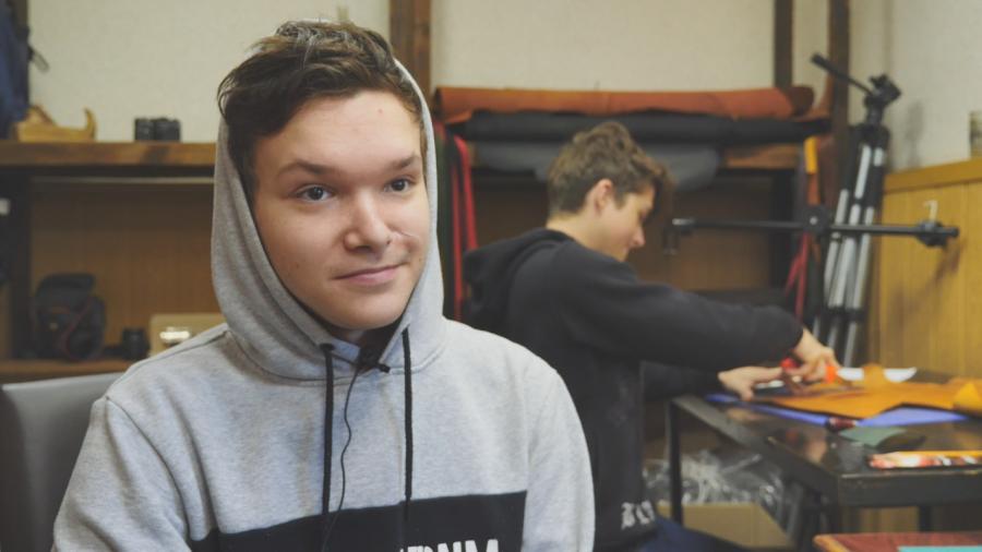 «Мені спершу дали зробити чохол для окулярів. Я його зробив за годин 6. Потім одразу зробив другий. Тільки вже швидше. Потім заміть чохлів пішли гаманці. Але вони не особливо в мене виходять і зараз. Але вдаються сумки. Бананку навчився робити. Роботою задоволений. Все круто», - Лев, підмайстер.