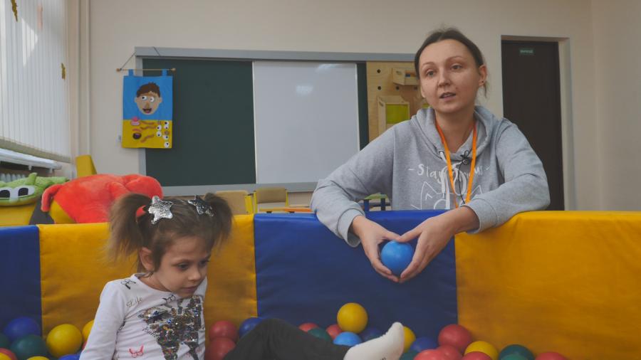 У Насті порушена координація руху. Тож реабілітолог Валентина проводить з нею заняття за індивідуальною програмою. Такі розробляються для кожної дитини, яка відвідує центр.
