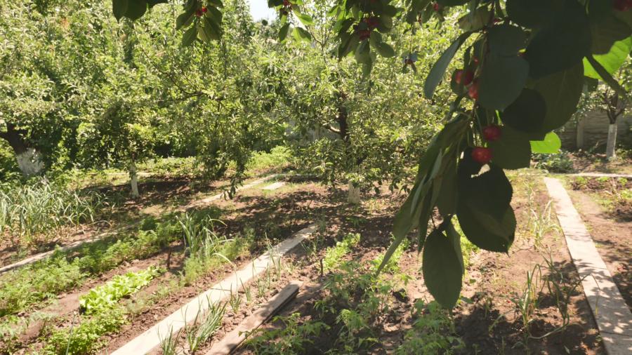 Окрім догляду за доньками, пристрасть Марини - сад й город. Тут в неї всього потрохи: зелень, морква, полуниця, малина, виноград, фруктові дерева. По господарству допомагають дівчатка.